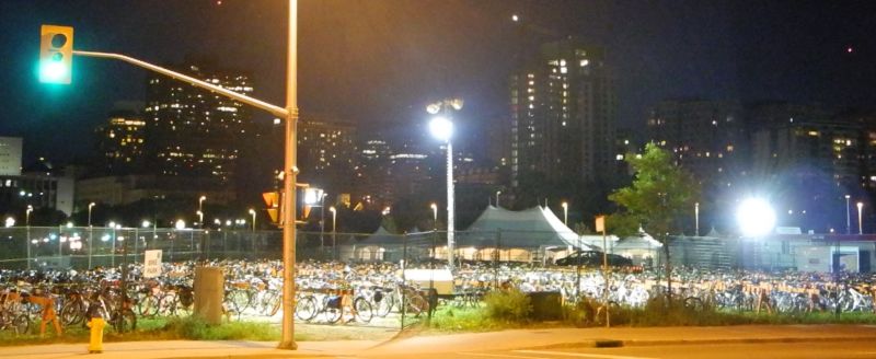 Bike parking at Ottawa RBC Bluesfest 2014 – 850 bikes parked for Lady Gaga’s performance (Charles Akben-Marchand).