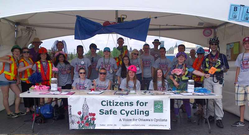 Other events, such as FolkFest, HOPE Volleyball and Bank Street’s Glow Fair provide supervised bike parking too (as does Lansdowne, as we learned today), following trendsetting past president of Citizens for Safe Cycling Charles’ initiative. Valet parking is free, but donations are appreciated. After deducting some cost, in 2013 $2500 went to Blues in the Schools (an educational program) and $2500 went to Citizens for Safe Cycling.
