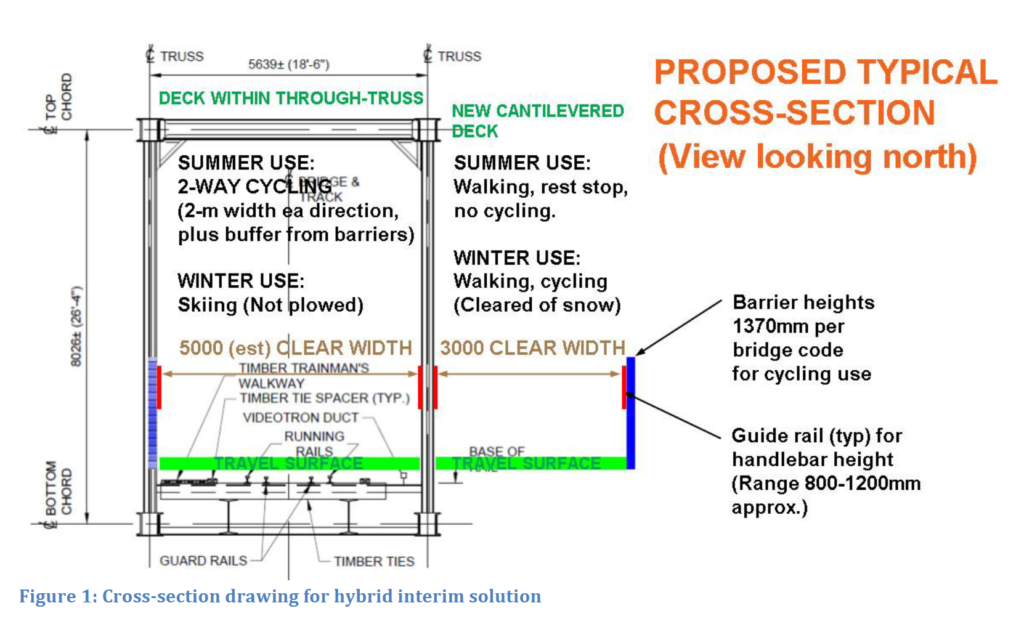 In summary, please consider seriously these proposals for attracting more people to travel by human power between Ottawa, Lemieux Island, and Gatineau. The cantilevered deck has the added advantage of maintaining at least something for the public to use, if and when construction to restore rail traffic proceeds in the future. We look forward to receiving progress updates on this fast-tracked project, and will be pleased to discuss the foregoing if you wish.