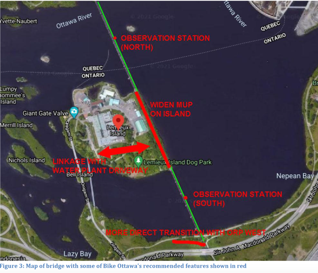 8. Extending a snow-cleared link from the Ottawa side of the bridge to Bayview LRT Station in concert with the Bike Ottawa proposal should be considered. It would greatly facilitate four-season commuting.