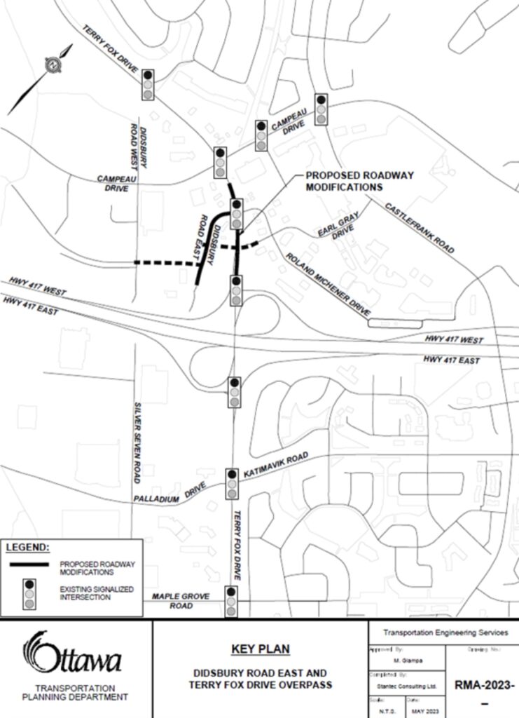 - To have Earl Grey Drive pass under Terry Fox Drive with a newly constructed underpass. No cycling facilities are planned for the underpass, nor are any planned for Didsbury Road.