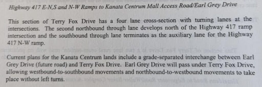 In June 2023 Bike Ottawa was made aware that the City of Ottawa posted a notice about constructing an underpass under Terry Fox Drive at the intersection of Earl Grey Drive, just north of Highway 417. As seen below, it is the intersection adjacent to the Kanata Centrum Shopping Centre.