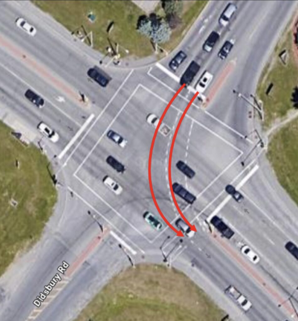 The modification of the protected intersection at Didsbury and Terry Fox will adhere to the Protected Intersection Design Guide published by the City of Ottawa. Given the proximity to Kanata Centrum Shopping Centre, the Terry Fox park and ride, and a future LRT extension as part of Stage 3, the modification of this intersection is well merited and we applaud the decision to increase the safety of our streets. We strongly oppose, however, the inclusion of a slip lane in the protected intersection design as this prioritizes car traffic over the safety of people walking and cycling. Further, travelling southbound on Terry Fox it appears as though the cycling lane floats in the middle of the roadway while cars merge across it to join the highway. This design is not safe, and will limit the facility being used to its full potential. Cycling infrastructure should be built to accommodate all ages and abilities.