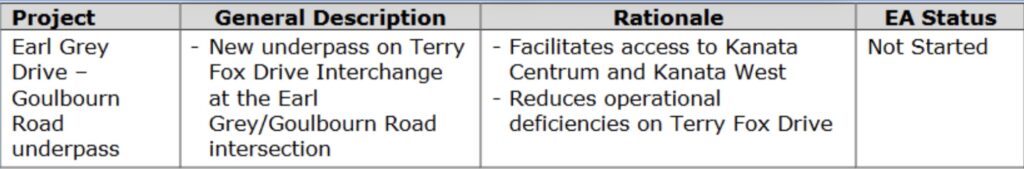 … Earl Grey Drive will be extended under Terry Fox and back to the Centrum development, allowing for a better level of service to the area and improving traffic circulation patterns.