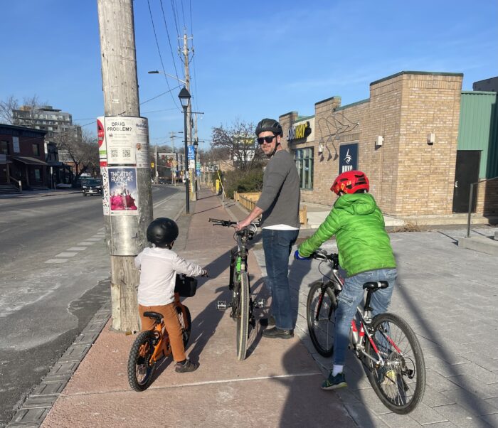 And getting out to do their errands in a walkable/bikeable community. In this case, it’s at Metro on Beechwood Avenue. The bike rack stayed busy all winter, but we loved the variety last week: bike with a trailer, e-bike and a regular commuter hybrid.