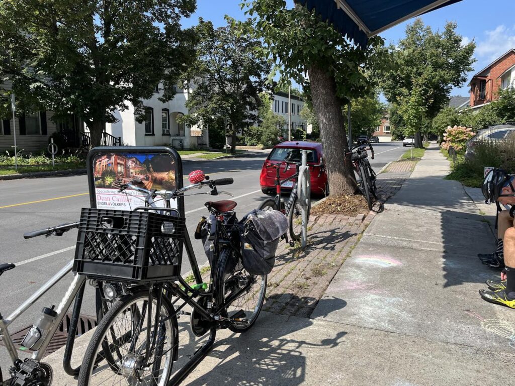 Note what isn’t there. Both sides of Crichton Street have on-street parking for the entire length of the block. there are more bicycles than cars, but they are forced into a narrow space beside the sidewalk, and must be lifted into place. Union has on-street parking on only one side; again, more bicycles than cars, and in far less space.