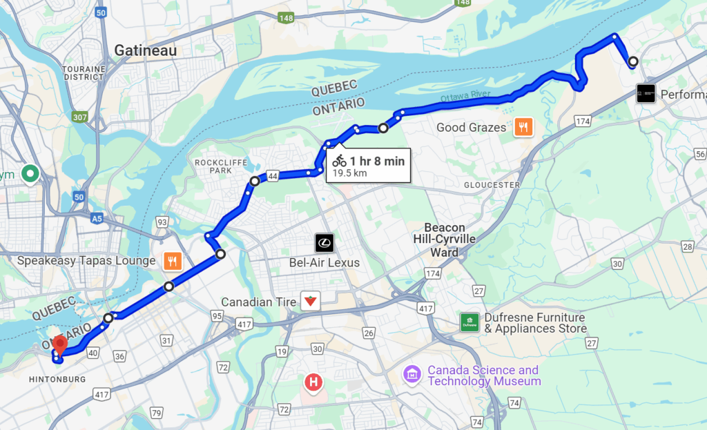 In October 2024, I joined the Board of Bike Ottawa, an advocacy organization that promotes safe cycling infrastructure and enabling more people to cycle around our city safely and efficiently. The Annual General Meeting for Bike Ottawa was held on October 26, a day that is typically colder than is comfortable for most fair-weather cyclists, but in the grand scheme of things isn’t particularly cold. It hadn’t snowed yet in the season but cycling home from the meeting it was around 0 degrees Celsius. The ride from Orleans to Bayview Yards in Mechanicsville is about 20 km each way, give or take.