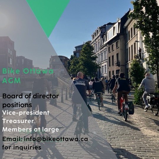 Bike Ottawa is looking for new board members. If you want to support safe cycling in Ottawa, please contact us for more information and consider putting your name forward for a position.