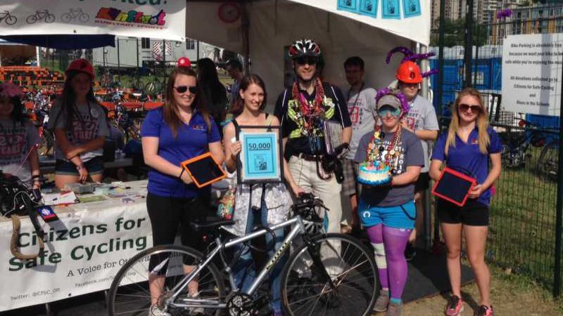 Today, Citizens for Safe Cycling and RBC Bluesfest volunteers parked their 50,000th bike since the valet service started in 2006 with a modest 1193 bikes parked. In 2013 the number had grown to 8632 bikes and not one was ever lost.