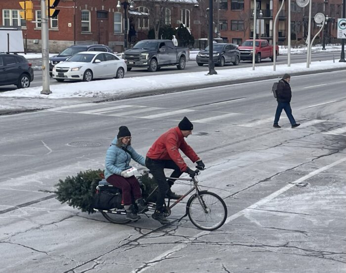 This couple was spotted riding with their Christmas #TreeByBike in Ottawa.