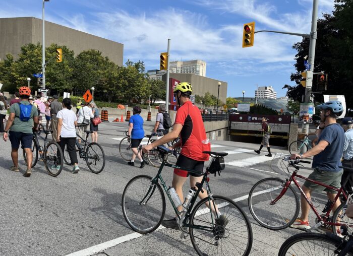 Bike Ottawa took to the streets and Queen Elizabeth Driveway yesterday to celebrate its 40th anniversary of working to make the streets safer for cyclists (and by extension people who walk and roll as well).